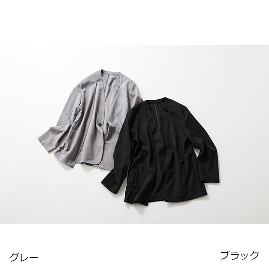 Effortless sophistication meets all-day comfort in this 2-way no-collar jacket. Designed with a built-in vest illusion and convertible draped sleeves, it can be worn as a classic tailored jacket or styled casually as a shoulder-drape piece.