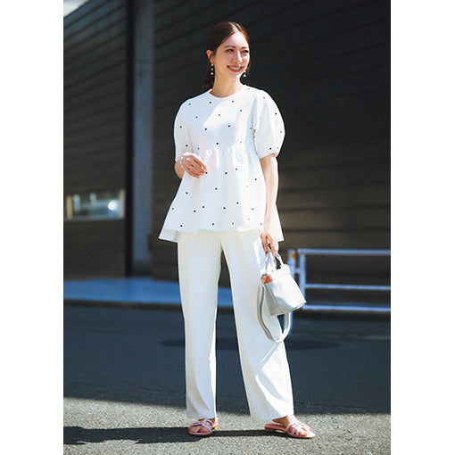 Don't let rainy days dampen your style. The “Keep Clean” Semi-Wide Pants by Ame no chi Hare are crafted with high-tech fabric that repels water and oil, keeping you clean, dry, and confident—even in unpredictable weather.