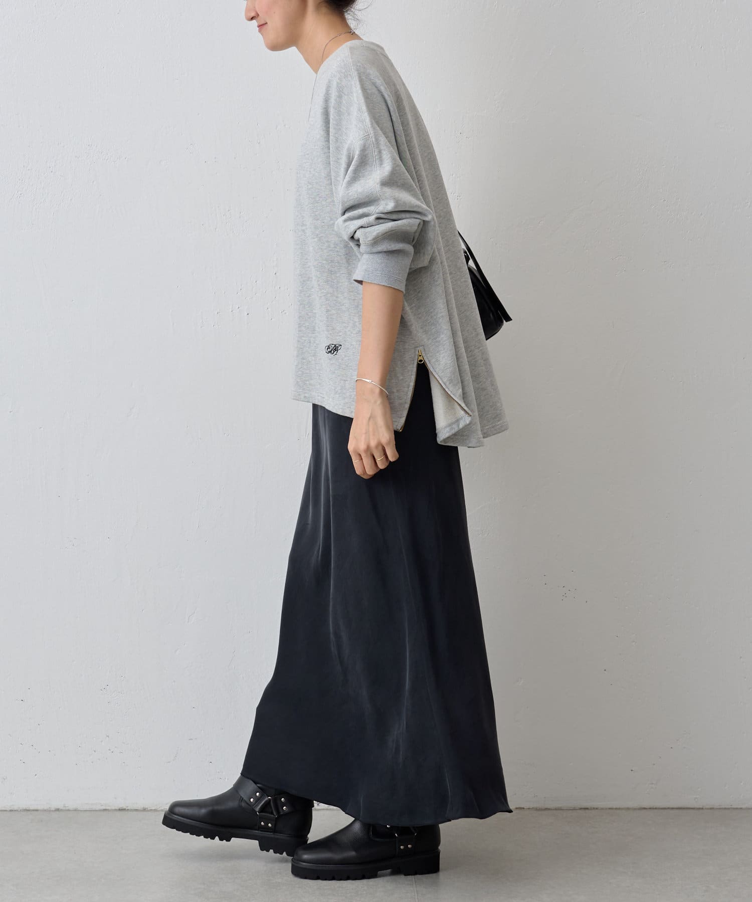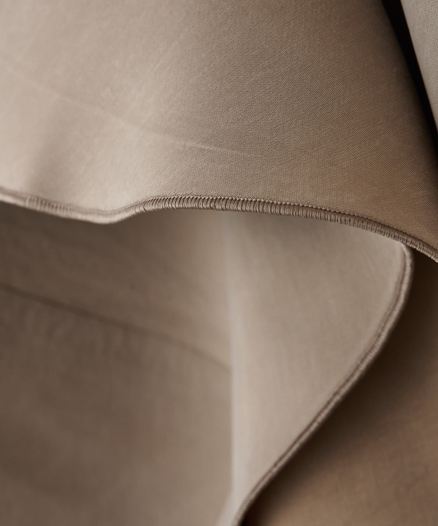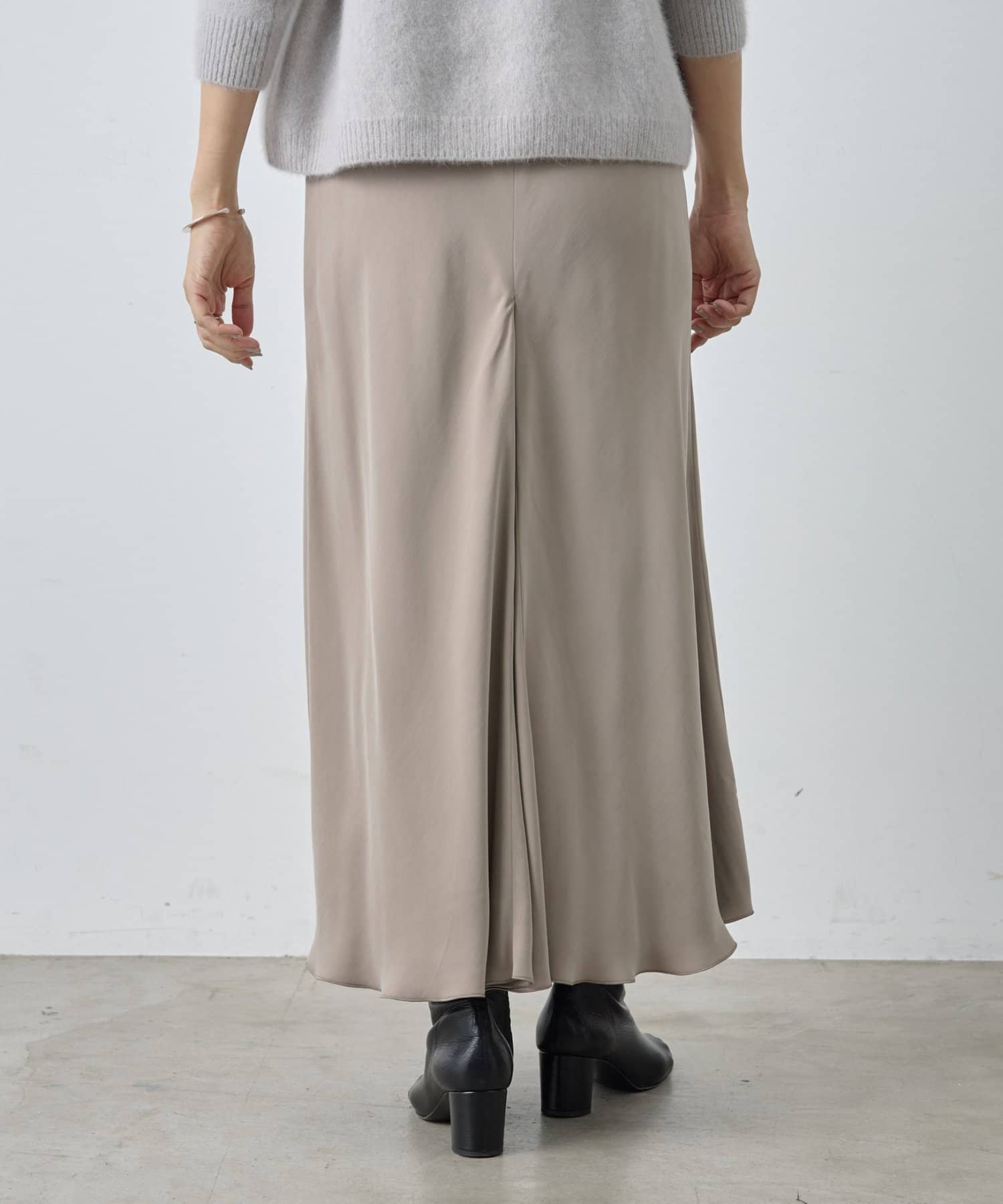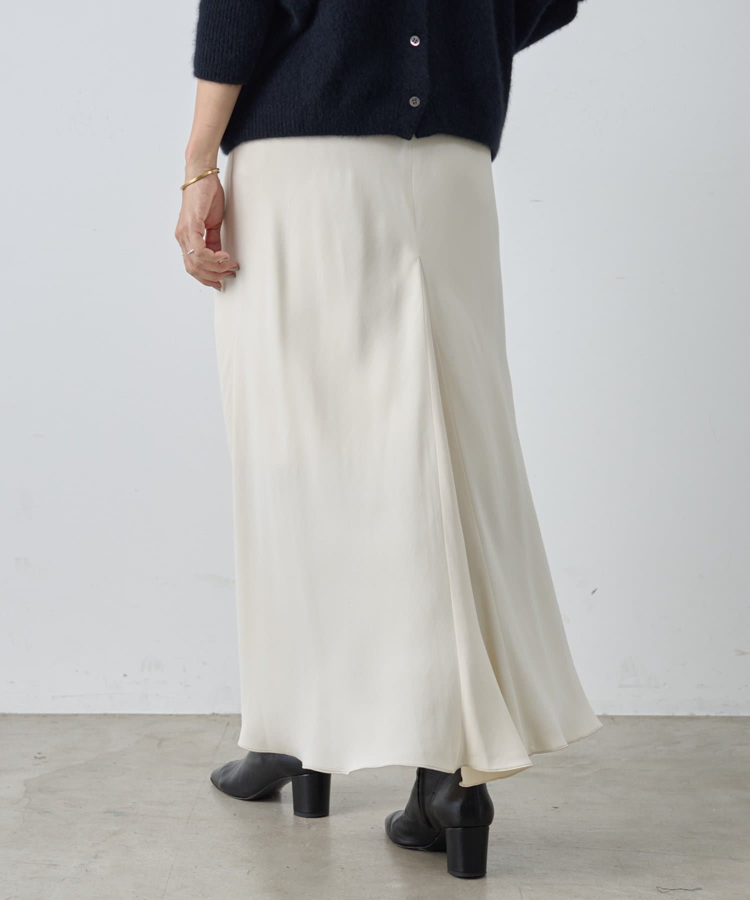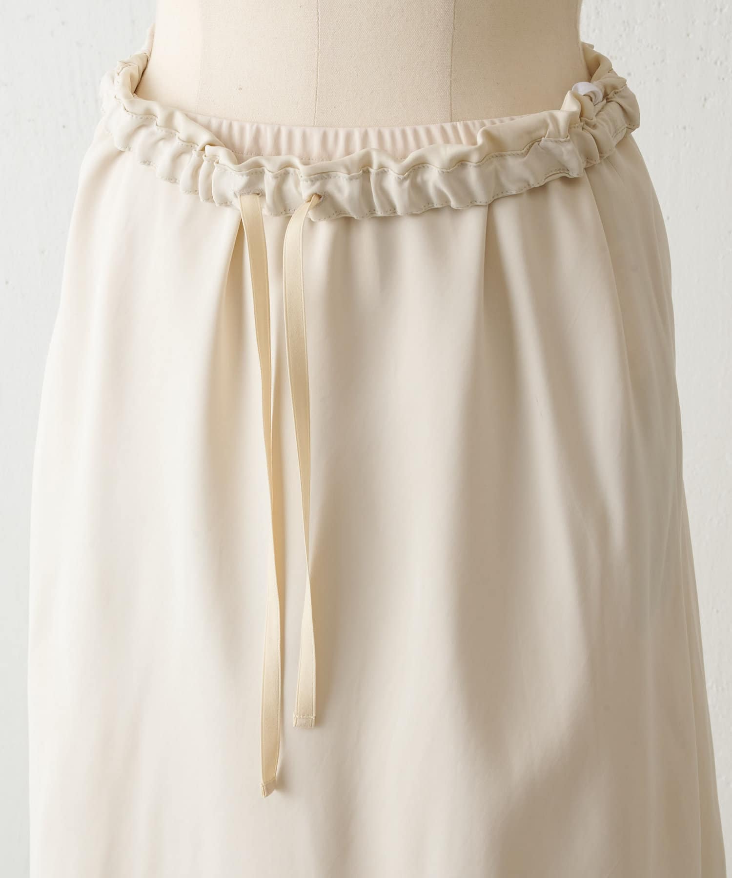 Crafted from 100% cupro, the fabric has a subtle sheen and smooth touch that feels luxurious on the skin. The elastic waistband with inner ribbon adjustment ensures comfort while allowing for a personalized fit. Its versatile design makes it perfect for everyday styling or special outings, pairing effortlessly with blouses, knits, or simple cut-and-sew tops.