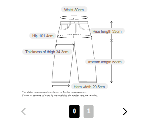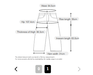 Size | Waist (cm) | Hip (cm) | Rise (cm) | Inseam (cm) | Thigh (cm) | Hem (cm) | Equivalent |