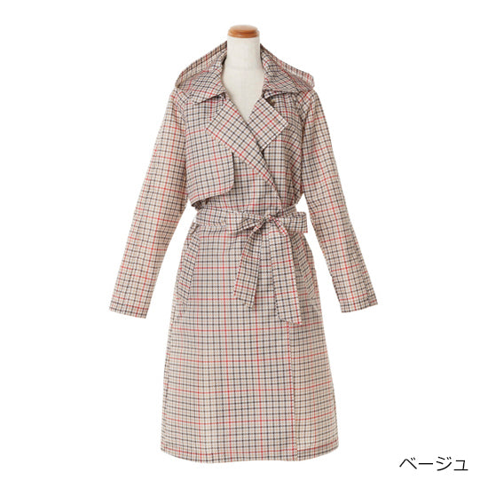 Elevate your rainy-day style with this chic patterned trench coat, featuring peek-a-boo checkered details on the collar and cuffs for a modern twist on classic outerwear.