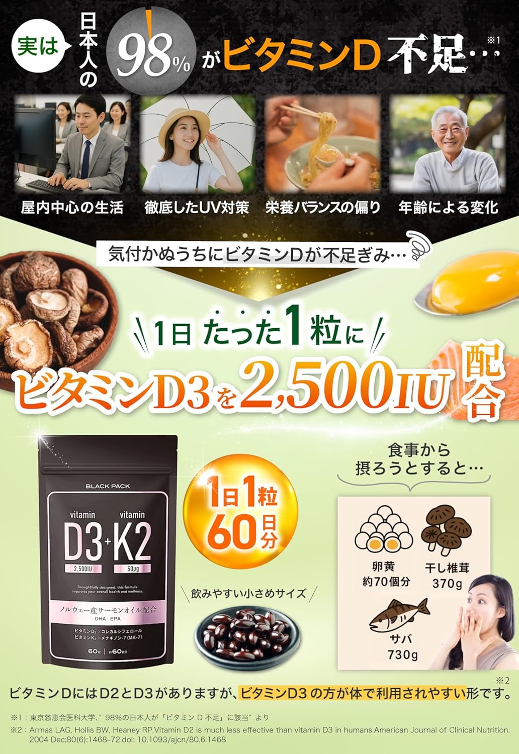 #VitaminD3 #VitaminK2 #Omega3 #NorwegianSalmonOil #BLACKPACK #JapaneseSupplements #ImmuneSupport #BoneHealth #MadeInJapan #NoAdditives #CleanLabelSupplements
