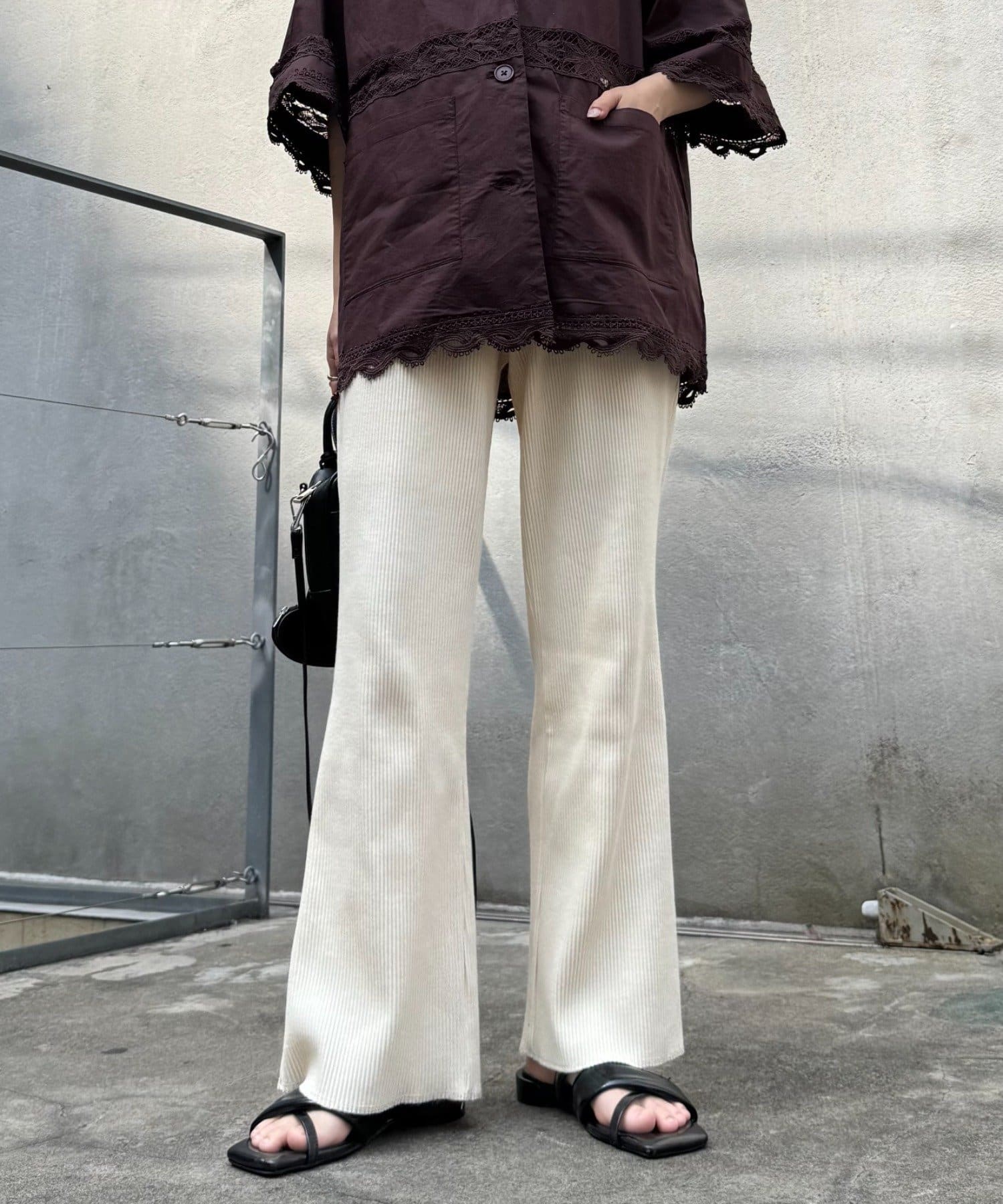 The vertical ribbed design creates an elongated look, while the slightly flared hem gives you a natural style-up boost. With an elastic waistband and soft cotton blend fabric, these pants are perfect for daily wear, casual outings, or even office-ready styling.
