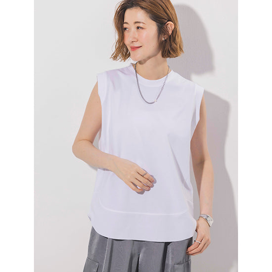 A customer-favorite from Dignite Collier's collection, this 70% cotton blend pullover combines comfort with refined details. The contrast hem stitching and back seam slit create subtle visual interest, while the sleeveless design works equally well as a standalone piece or layered under blazers.