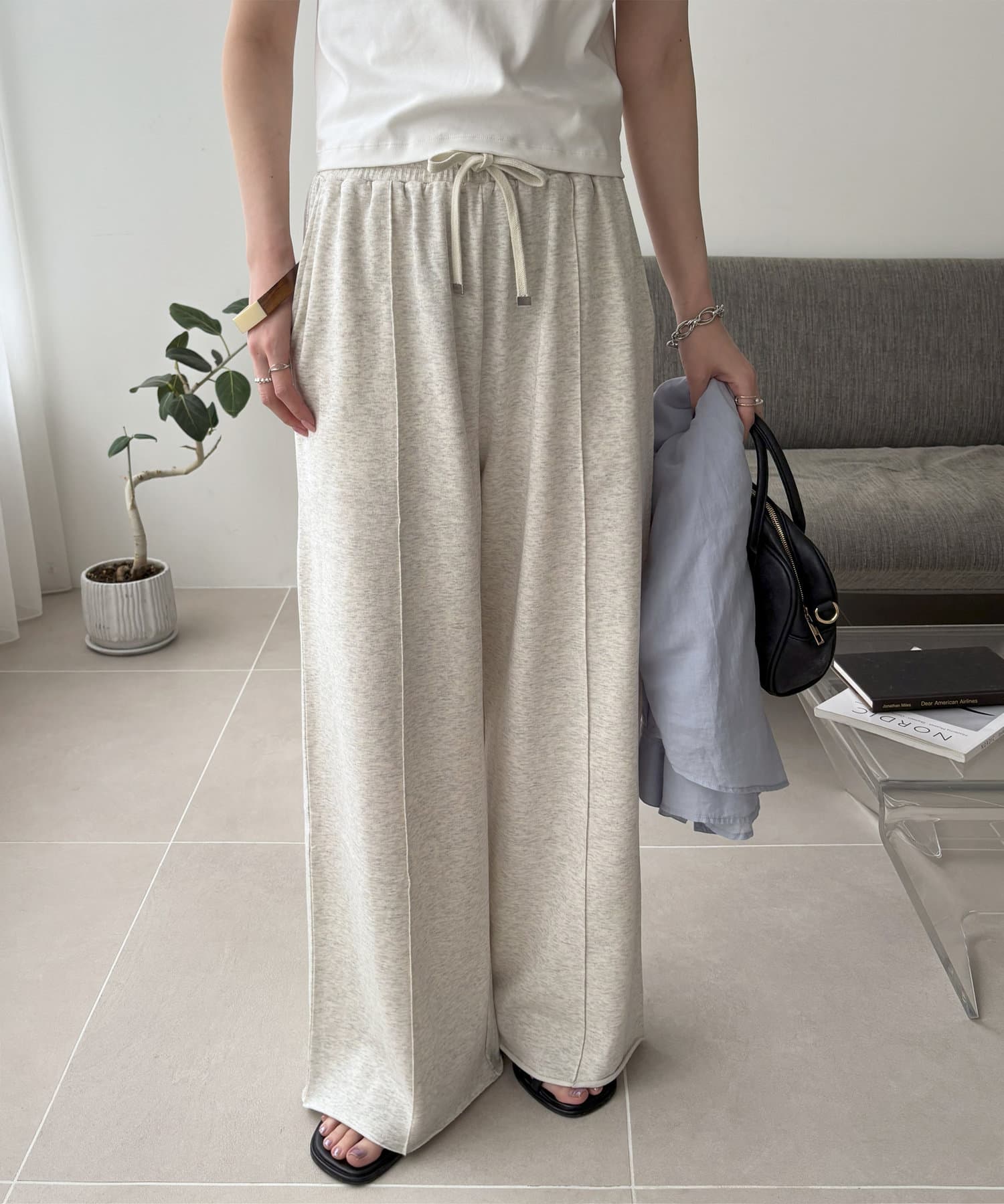 DISCOAT Light Ounce Fleece Center-Press Wide Pants | Relaxed & Chic Spring-Summer Sweatpants