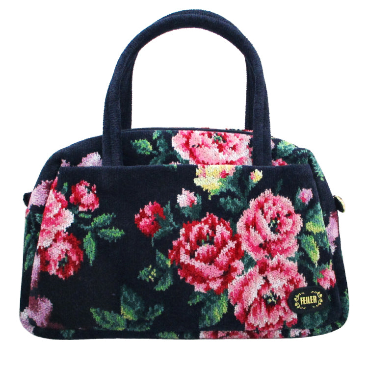 FEILER Rose Adagio Boston Bag - Timeless Navy Travel Essential (Made in Japan)