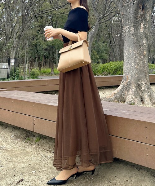 Louere Hem Piping Tulle Flare Skirt with Petticoat Set | Elegant Sheer Layers & Figure-Flattering Long Silhouette