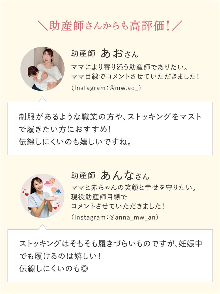 With reinforced toes, antibacterial and deodorizing properties, and static control, they’re perfect for everyday wear, from casual outings to business settings and formal occasions. Suitable for use up to the final month of pregnancy.