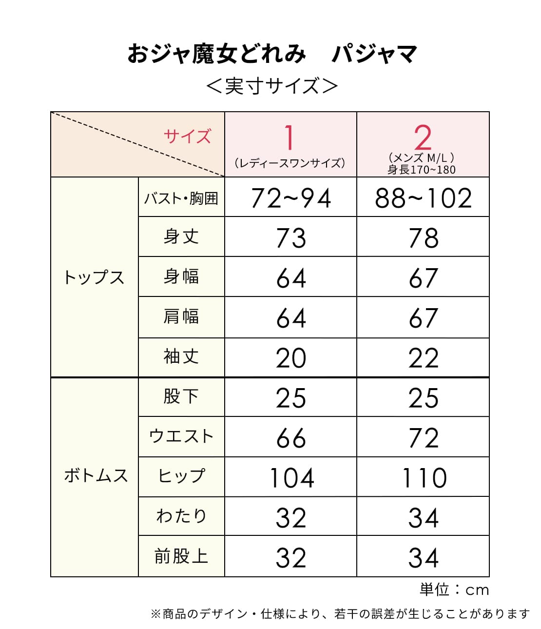 Size | Bust (cm) | Waist (cm) | Notes |