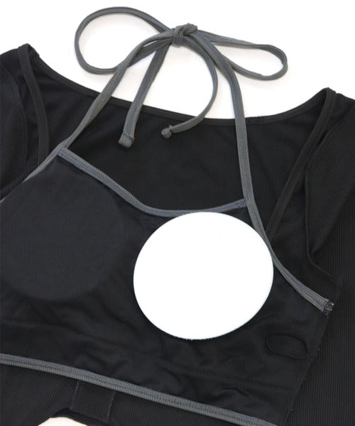 Ribbed Cardigan-Style Bikini Top (one-piece with sewn-in halter)