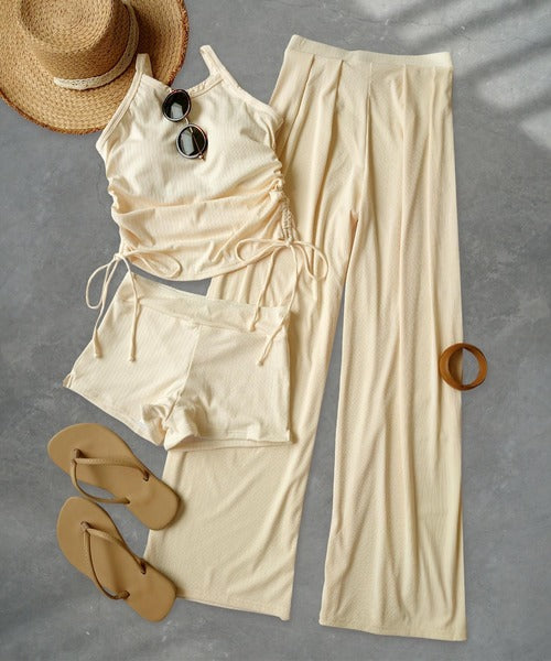 👙 3-Piece Set – Camisole bikini top, bikini shorts, and full-length high-waisted pants