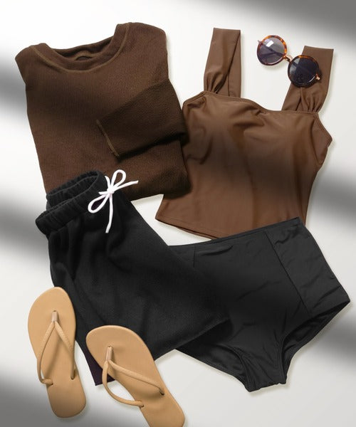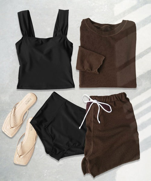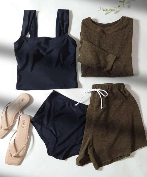 - 4-in-1 Set – Includes rash guard, tankini top, bikini bottoms, and shorts