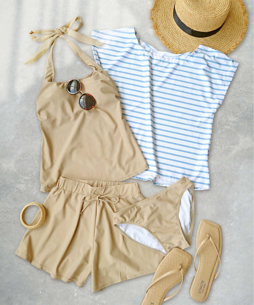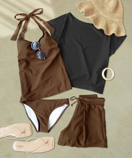 👙 4-Piece Set – Includes tankini top, shorts, short pants, and rash guard top.
