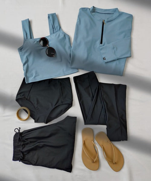 This is more than just swimwear — it’s your go-anywhere, do-anything summer essential. Whether you’re swimming, doing yoga, or chasing kids at the beach, it offers modest coverage, stylish design, and unbeatable sun protection in one set.