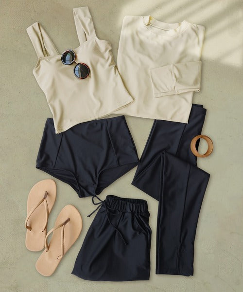 Featuring a UV protection rate of 99.9% and UPF50+ (tested by a Japanese certification body), this set offers maximum sun coverage while keeping you comfortable. Its sporty yet casual style makes it easy to wear like everyday clothing — perfect for the beach, pool, sauna, BBQs, or even active play with the kids.