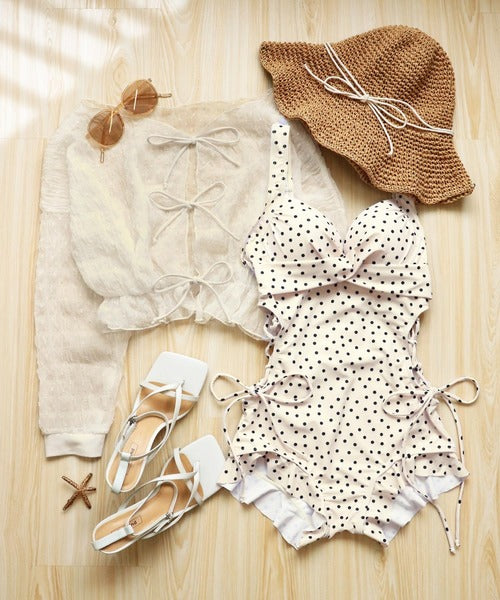 This swimsuit strikes the perfect balance between playful girlishness and subtle sexiness, offering flattering coverage with style. The 2-way sheer top adds versatility, making it a go-to for both beach fun and stylish lounging.