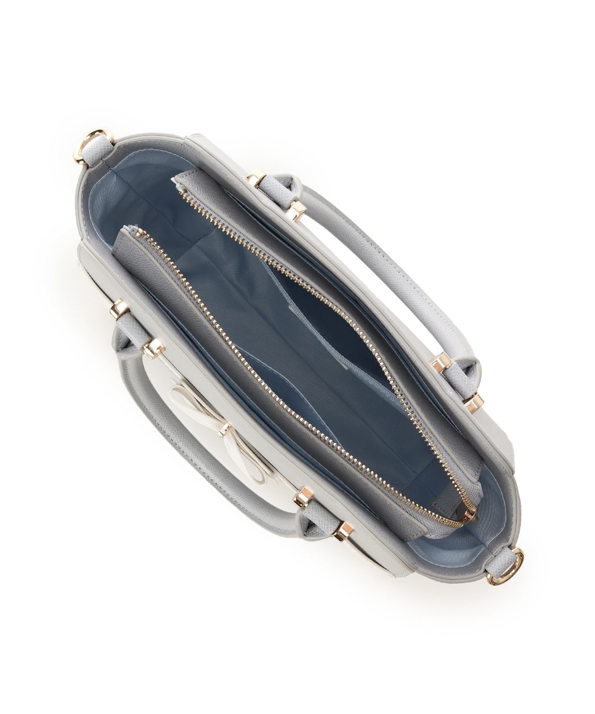 SAMANTHAVEGA Bi-Color Accent Ribbon Handbag Elegant 2-Way Tote with Detachable Strap