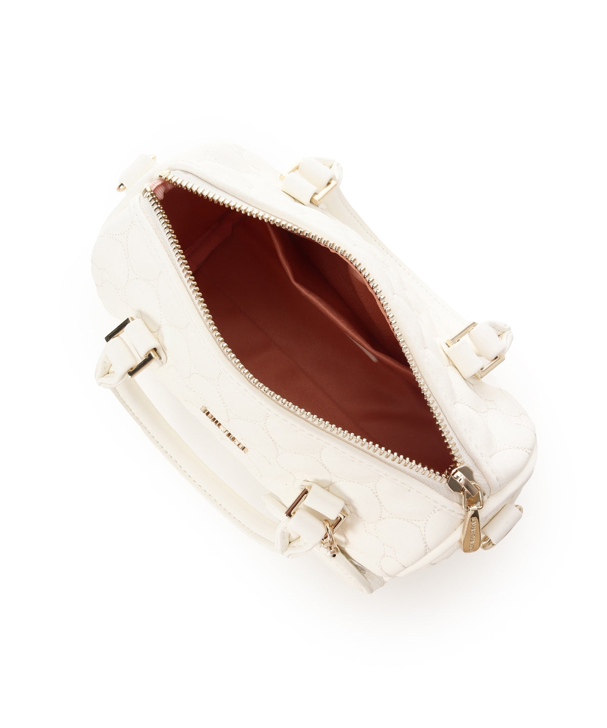 SAMANTHAVEGA Eternal Heart Quilted Boston Bag | 2-Way Handbag with Detachable Mirror