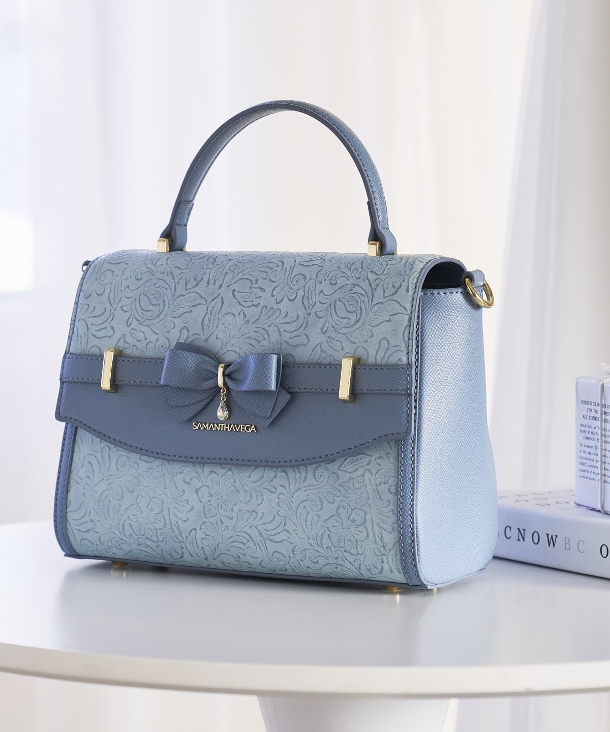 SAMANTHAVEGA Floral Accent Ribbon Shoulder Bag Elegant Embossed Flower Design & 2-Way Style