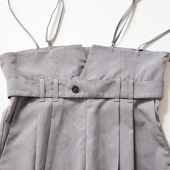 The relaxed silhouette seen from the side adds a mannish flair, while the delicate shoulder straps and adjustable waistmaintain a feminine elegance. Ideal for petite frames too—wear them as a jumpsuit-style all-in-one by pulling up the waist.
