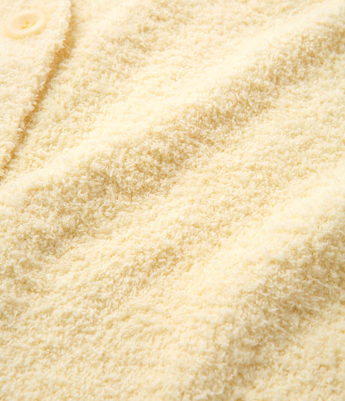 Stay warm and cozy on chilly days with the Whipply V-Neck Cardigan, crafted from ultra-soft chenille knit that feels like whipped cream against the skin. Adorned with delicate mimosa or sakura embroidery on the sleeve, this cardigan brings a touch of spring charm to your loungewear and everyday looks. Designed with a relaxed silhouette and versatile short length, it pairs beautifully with pajamas, dresses, or casual outfits.